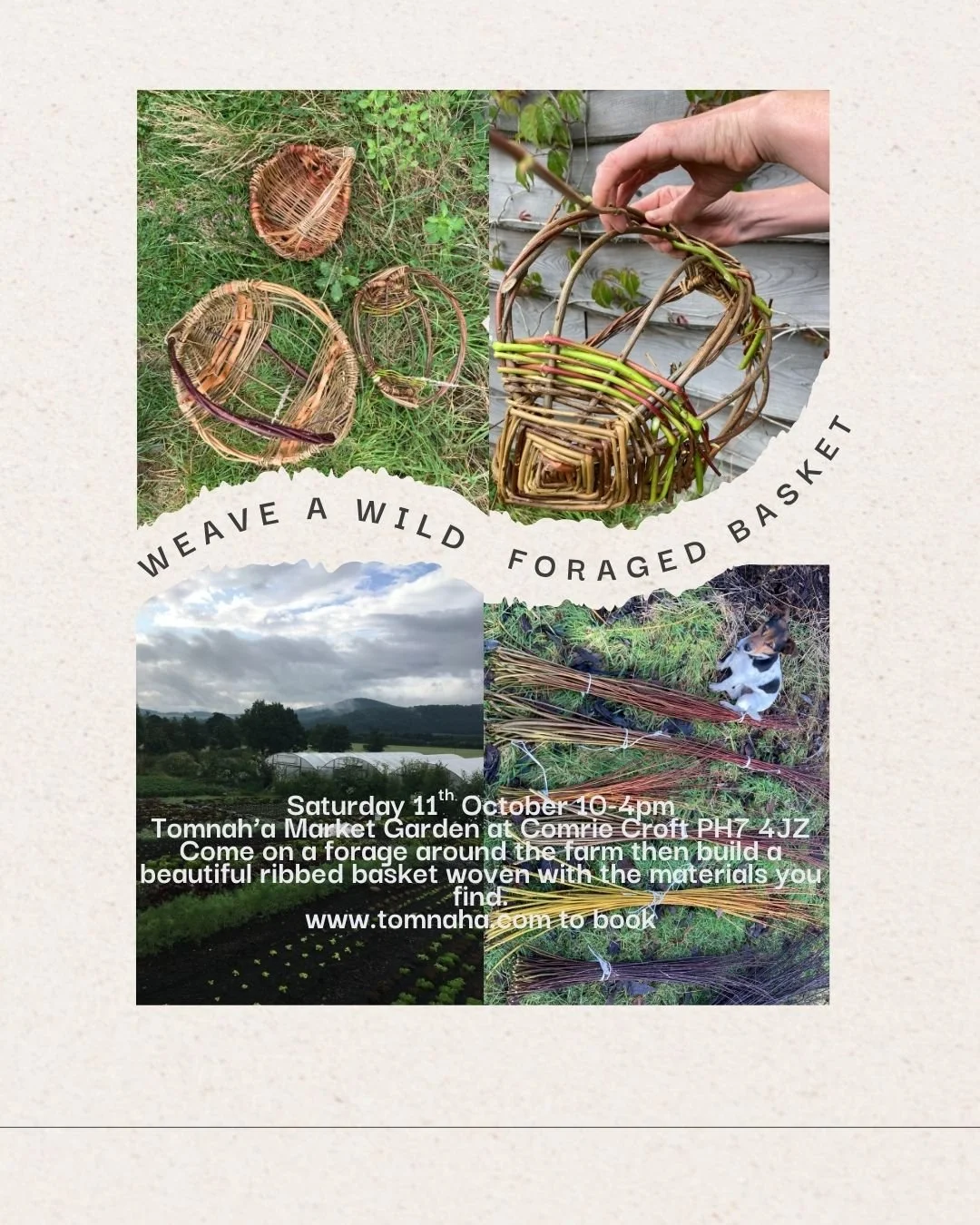 We will spend the morning browsing and foraging the hedgerows of our market garden finding all sorts of weavable materials that you can find growing in urban and rural areas. With an assortment of different textures and colours we will weave a hedgerow/ ribbed basket which is perfect for taking on other foraging adventures.
